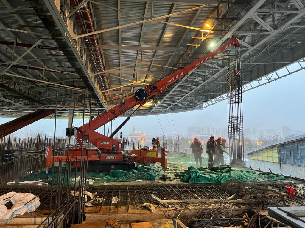 Например, в арендном парке ARLIFT есть мини-кран паук с рабочей высотой 31 м, которые поднимают 15,5 т. Это мини-кран JF545CDH-2 — таких всего два в России.