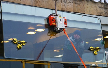 Компания АРЛИФТ произвела монтаж стеклопакетов внутри бизнес-центра «Добролюбов» в Петроградском районе Санкт-Петербурга с помощью мини-крана Jekko SPX 527CDH и вакуумного захвата ARLIFTER GS-750