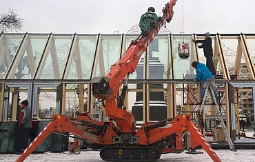 На этот раз мини-кранами JEKKO и вакуумными захватами ARLIFT были смонтированы витрины магазинов в торговом центре МЕГА в Республике Казахстан.