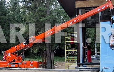 Монтаж стекла с помощью мини-крана JEKKO SPX527 - Частный дом