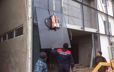 Мини-кран SPD360 и вакуумный захват Arlifter GS-850 провели монтаж стеклопакетов весом более 600 кг в Казахстане.