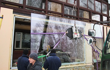 Наши объекты - Подъем стекол на 4-й этаж через люки