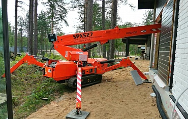 На берегу Ладожского озера мини-кран Jekko SPD360CDH произвел потолочный монтаж и остекление строящегося гостиничного комплекса