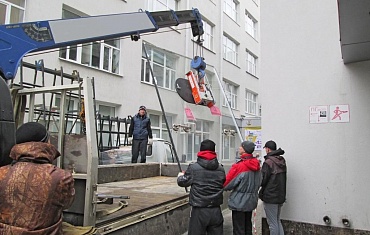 Наши объекты - Подъем стекол на 4-й этаж через люки