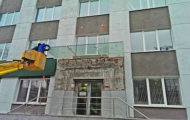 Реконструкция фасада Дворца Молодежи, Екатеринбург. Монтаж стекла весом 1100 кг
