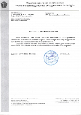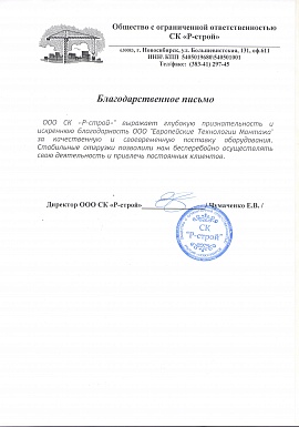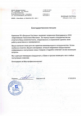 Благодарственное письмо от ООО "ПСК Алюпласт"
