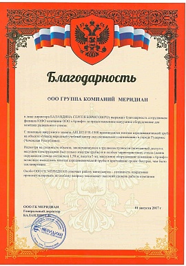 Благодарность от группы компаний Меридиан